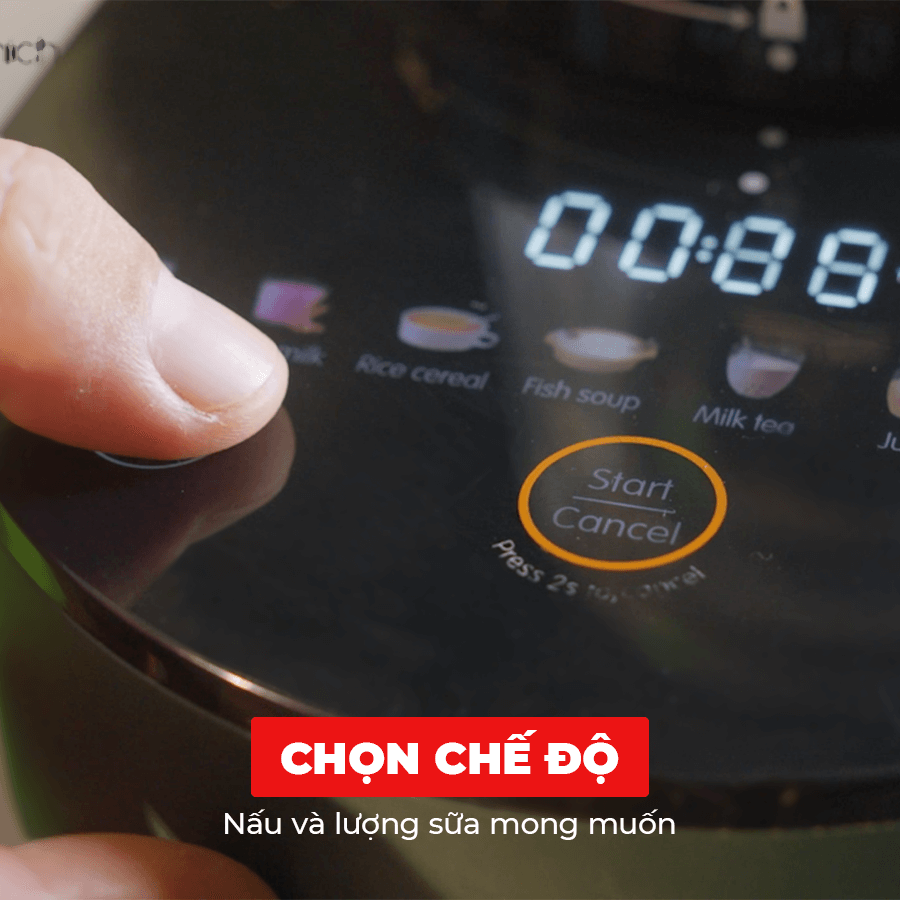 Chọn chế độ nấu sữa hạt Grain milk, lựa chọn lượng nước, máy sẽ tự động bơm nước và xay nấu.
