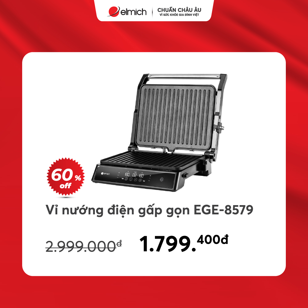 - Vỉ nướng điện gấp gọn EGE 8579 chỉ 1.799k, giá gốc 2.999k