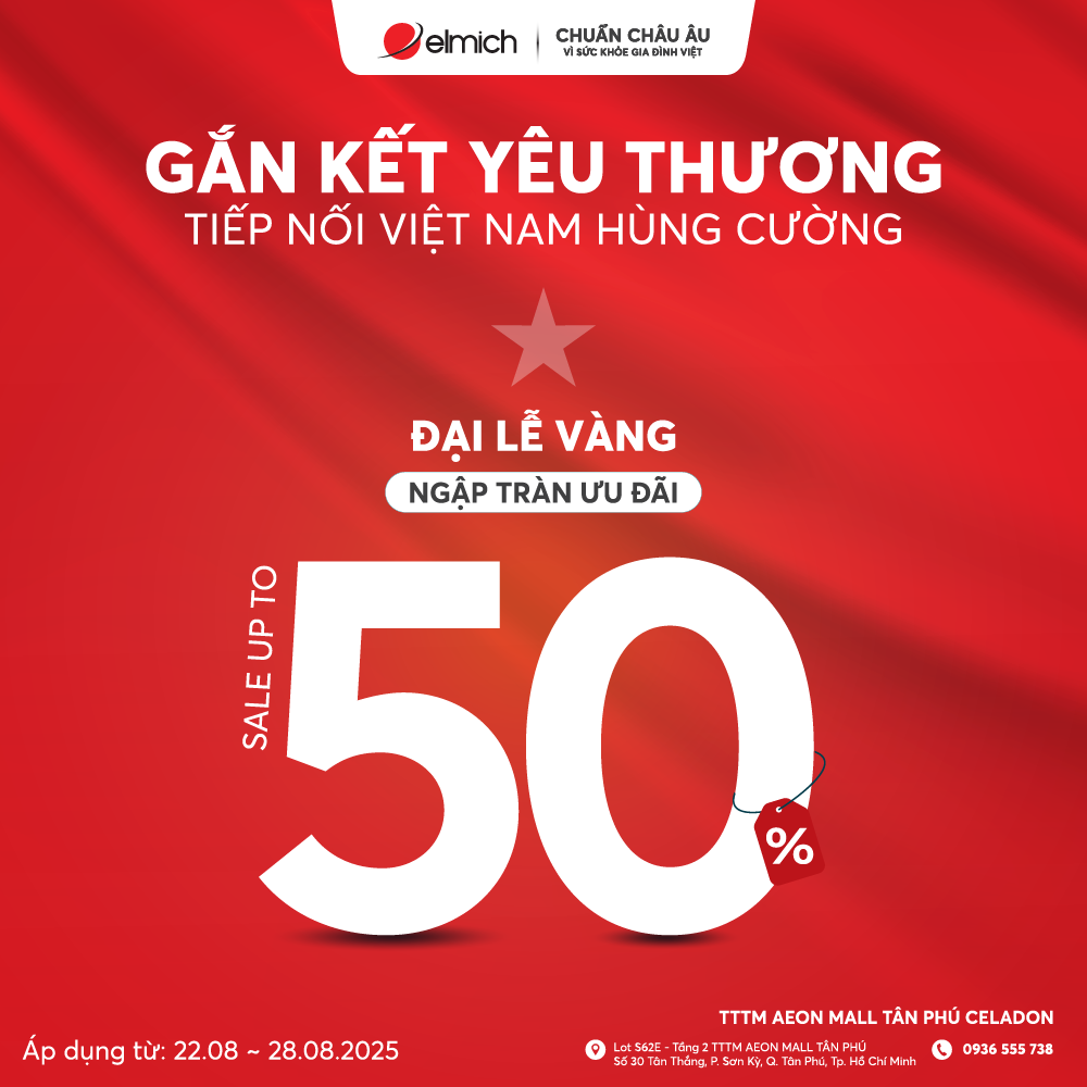Thổi bùng không khí rộn ràng nhân dịp Đại lễ lớn đang đến gần! Elmich mang đến hàng loạt deal siêu hot – ưu đãi ngập tràn giúp bạn có cơ hội sở hữu những sản phẩm gia dụng chuẩn Châu Âu với mức giá chưa từng có.