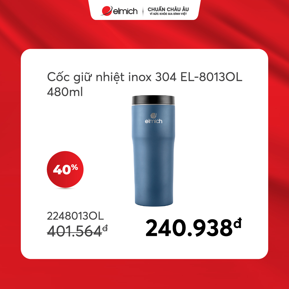 - Cốc giữ nhiệt inox 304 Elmich EL-8013OL dung tích 480ml chỉ 241k, giá gốc 402k