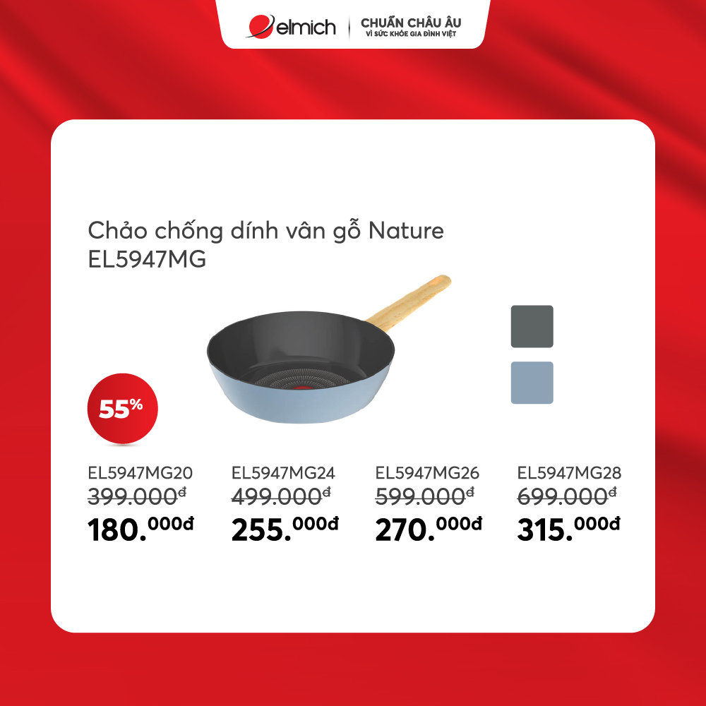- Chảo chống dính vân gỗ Elmich Nature EL5947MG20 size 20cm chỉ 180k, giá gốc 399k