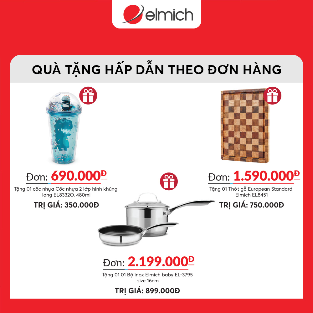 – Đơn hàng trị giá 1.590K tặng ngay 01 thớt gỗ European Standard Elmich EL-8451 trị giá 750K