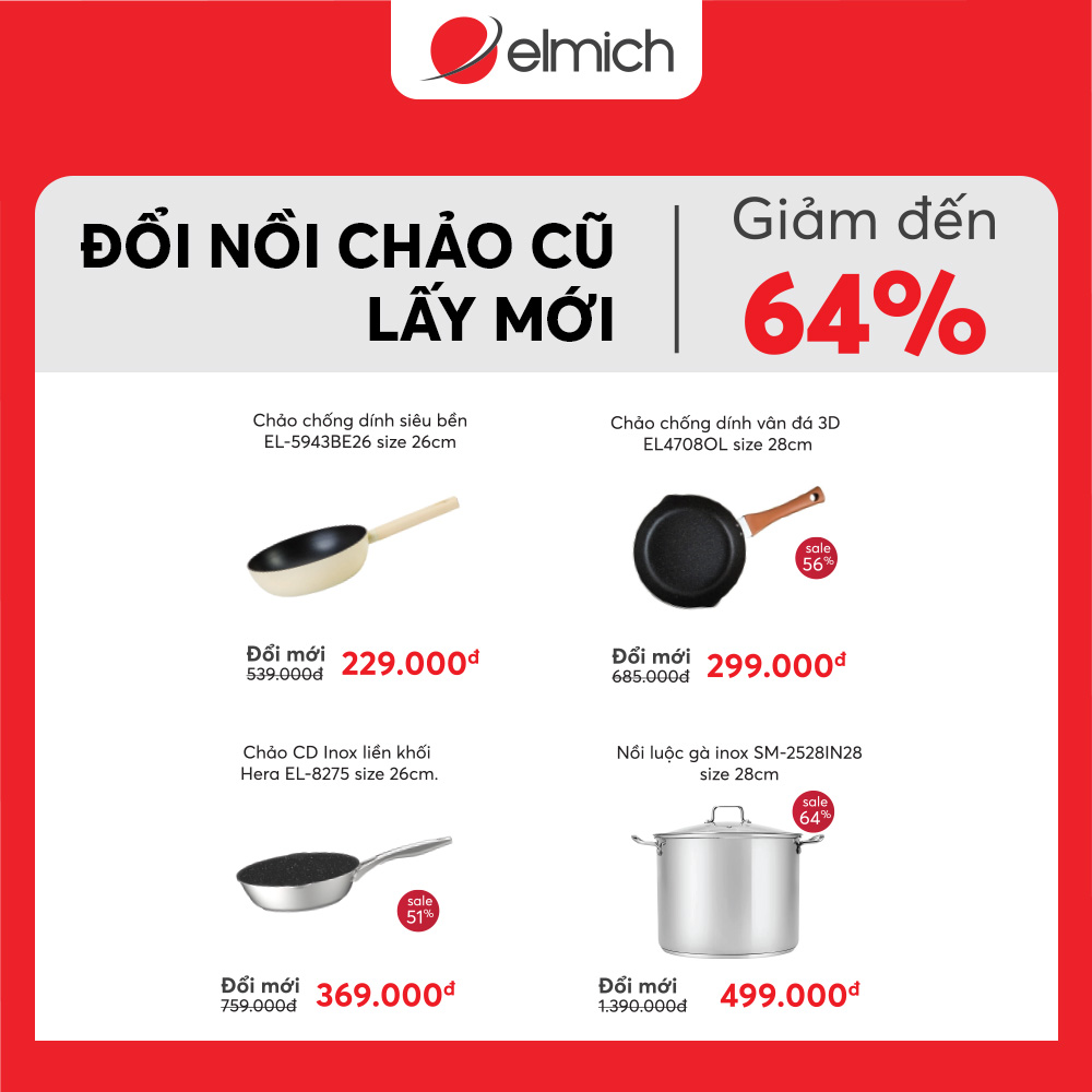 – Chảo chống dính siêu bền EL-5943BE26 size 26cm chỉ còn 229K, giá gốc 539K