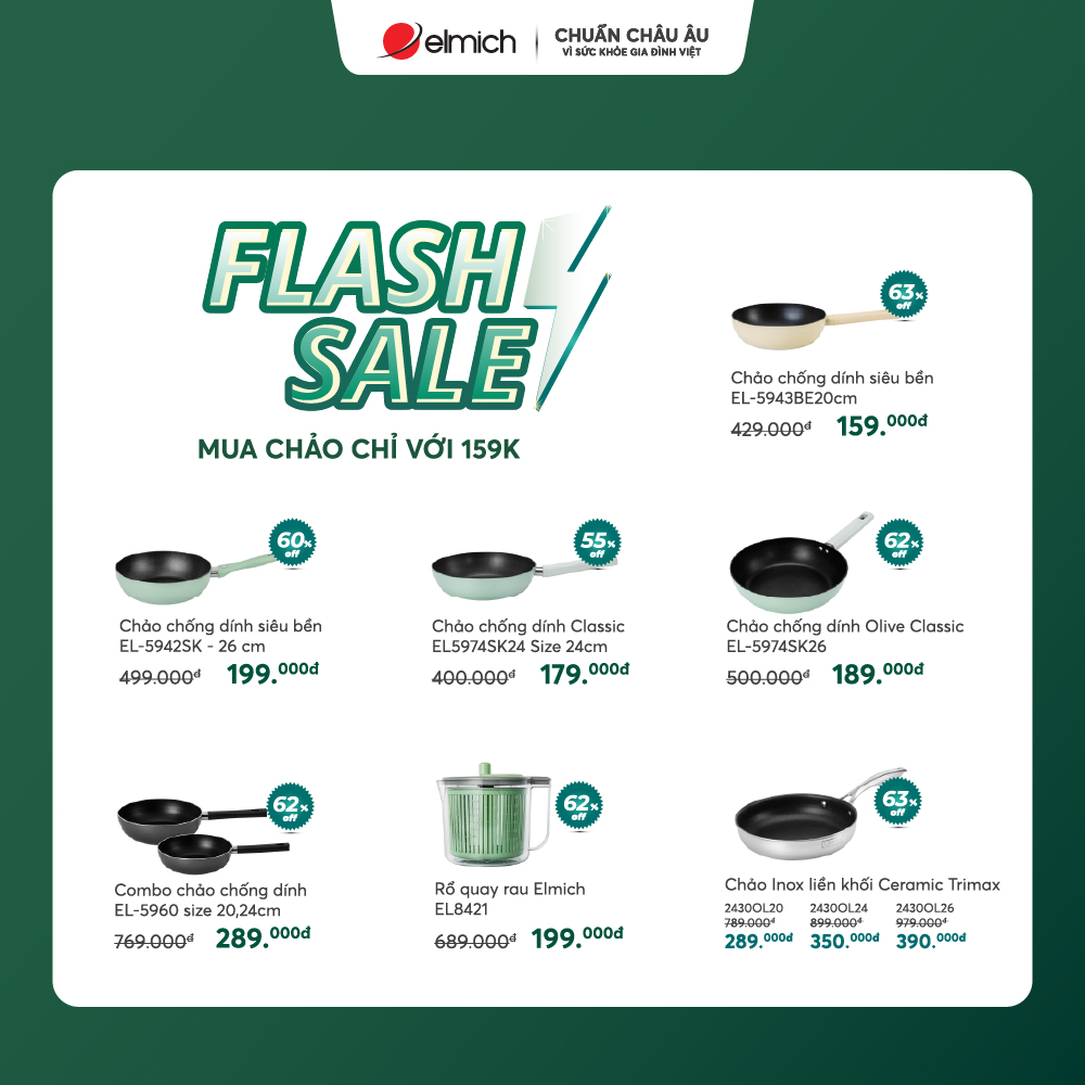 Cơ hội săn ngay combo chảo Elmich xịn giá hời chỉ có trong thời gian giới hạn! Không chỉ giúp gian bếp thêm tiện nghi, các combo chảo Elmich còn mang đến trải nghiệm nấu nướng nhanh gọn, đa năng và chuẩn vị.