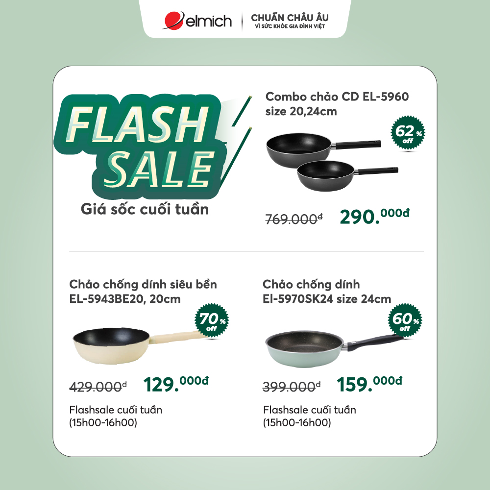 | Từ 2.000.000đ | Chảo chống dính vân gỗ Elmich Nature EL5947BK24 / EL5947MG24 size 24cm | 499.000đ |