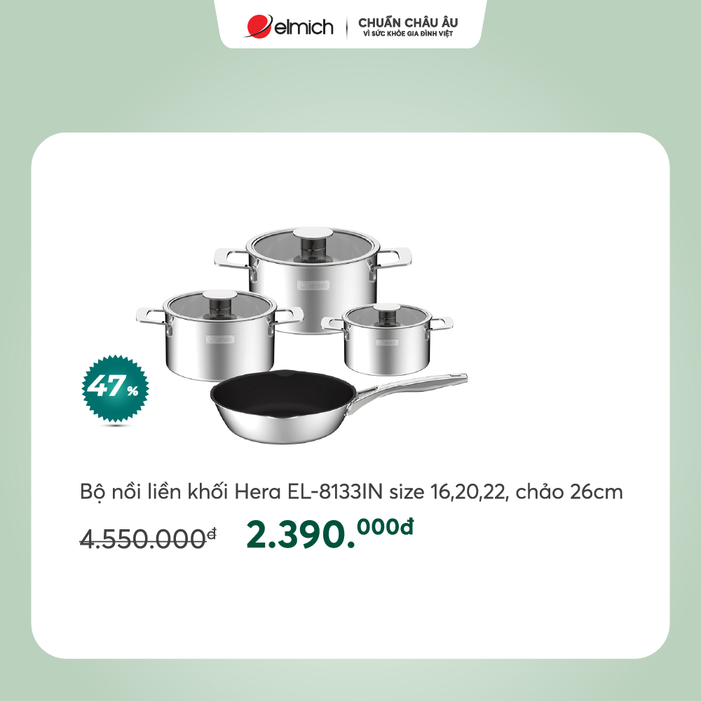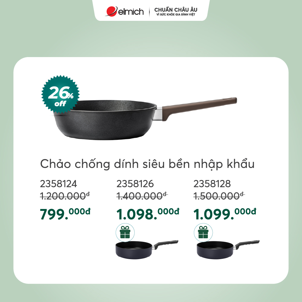 Đừng bỏ lỡ cơ hội nâng cấp gian bếp với những chiếc nồi, chảo Elmich chính hãng đang được giảm giá cực sâu. Chất lượng bền bỉ, an toàn chuẩn Châu Âu cho sức khỏe, thiết kế tinh tế – nay dễ dàng sở hữu với mức giá chưa từng có.
