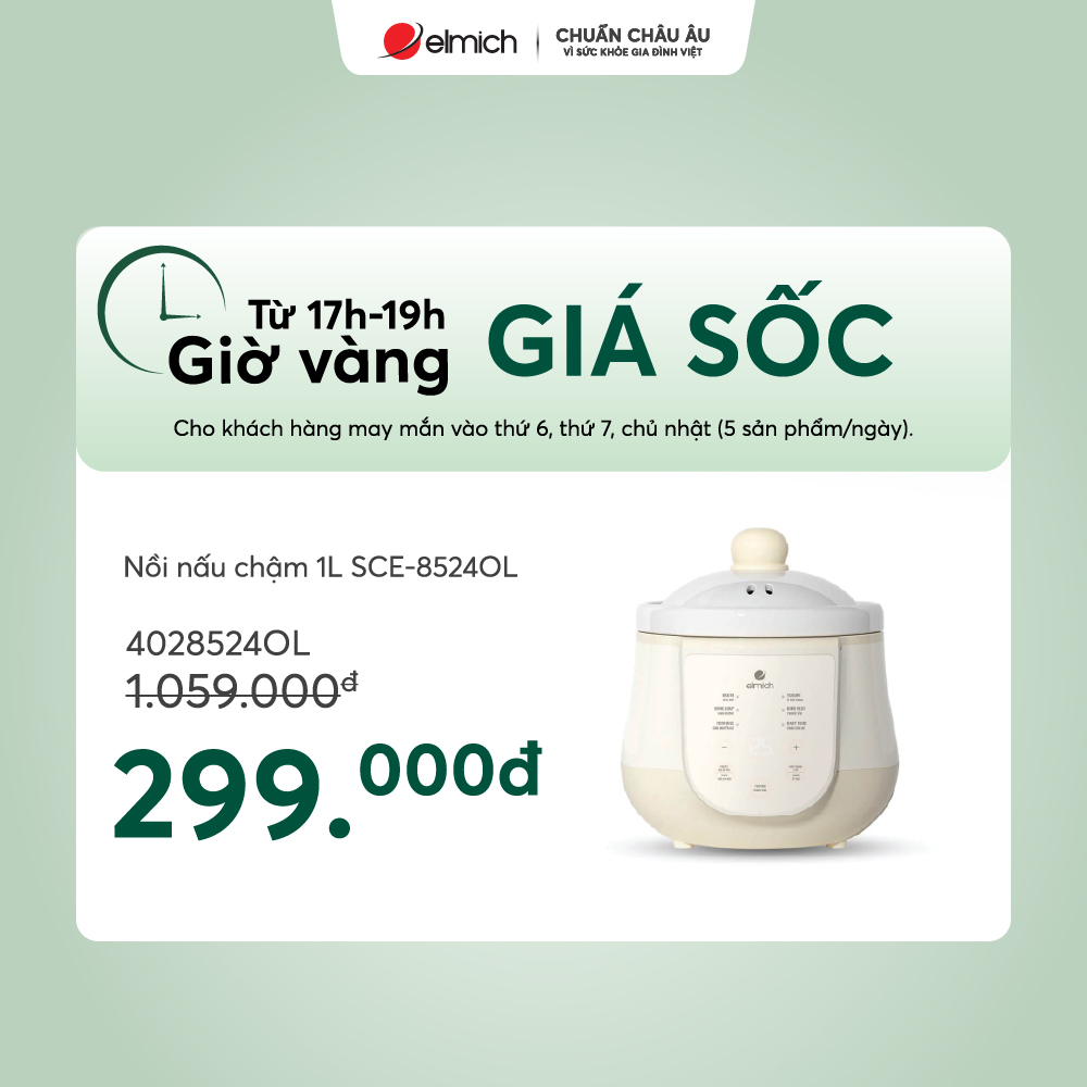 Chỉ trong khung giờ 17h – 19h các ngày Thứ 6, 7, Chủ nhật (20, 21/09 và 26–28/09), bạn có cơ hội sở hữu Nồi nấu chậm 1L Elmich SCE-8524OL với mức giá đặc biệt chỉ 299.000đ (giá niêm yết 1.059.000đ).