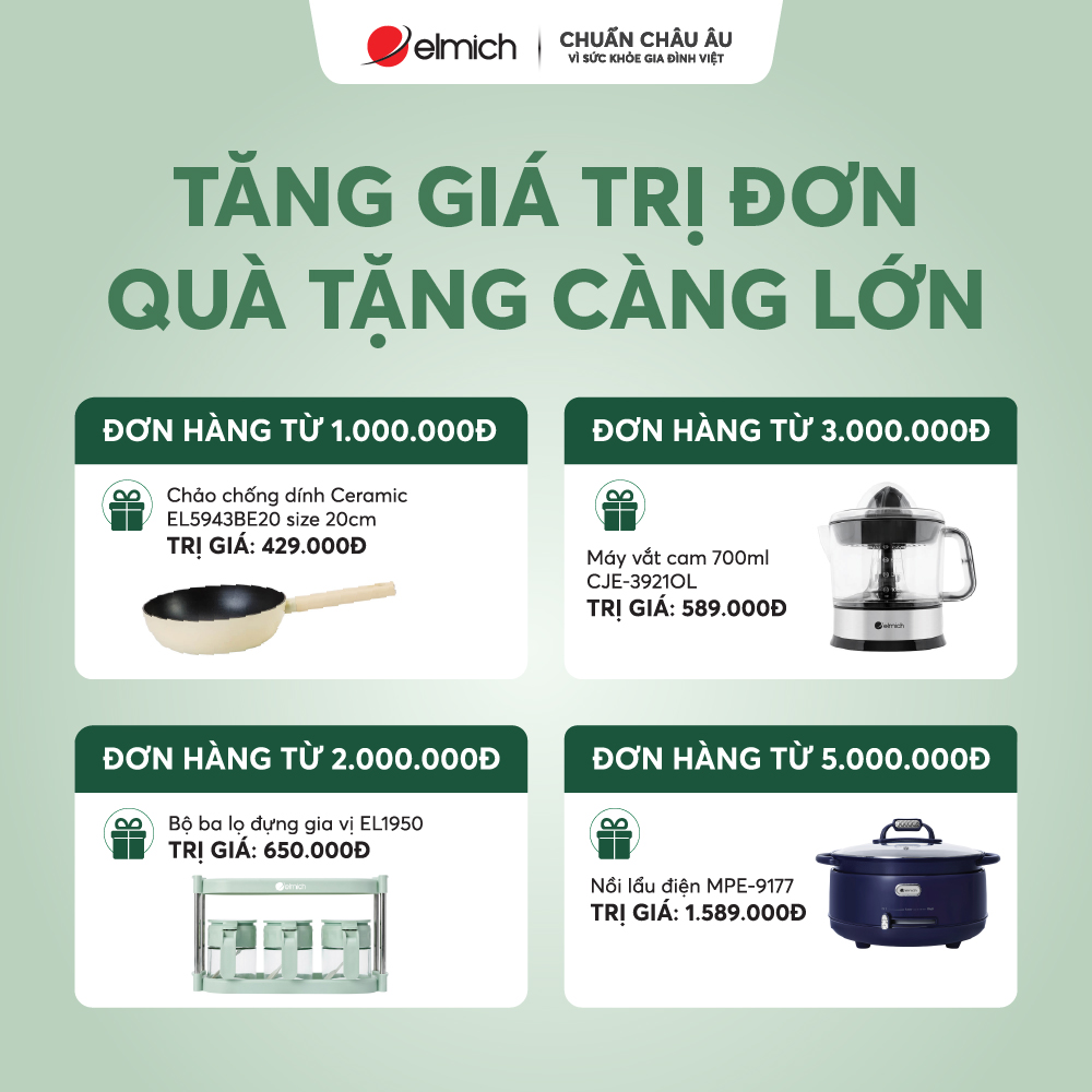 - Đơn hàng từ 5.000.000₫ – Quà tặng Nồi lẩu điện Elmich MPE-9177, mang đến những bữa lẩu ấm áp, sum vầy cho cả gia đình.