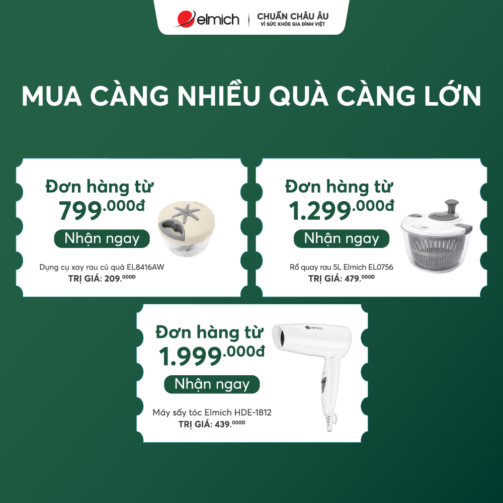 | > 799K | Dụng cụ xay rau củ quả Elmich EL8416AW (Mã: 2328416AW) | 209K |