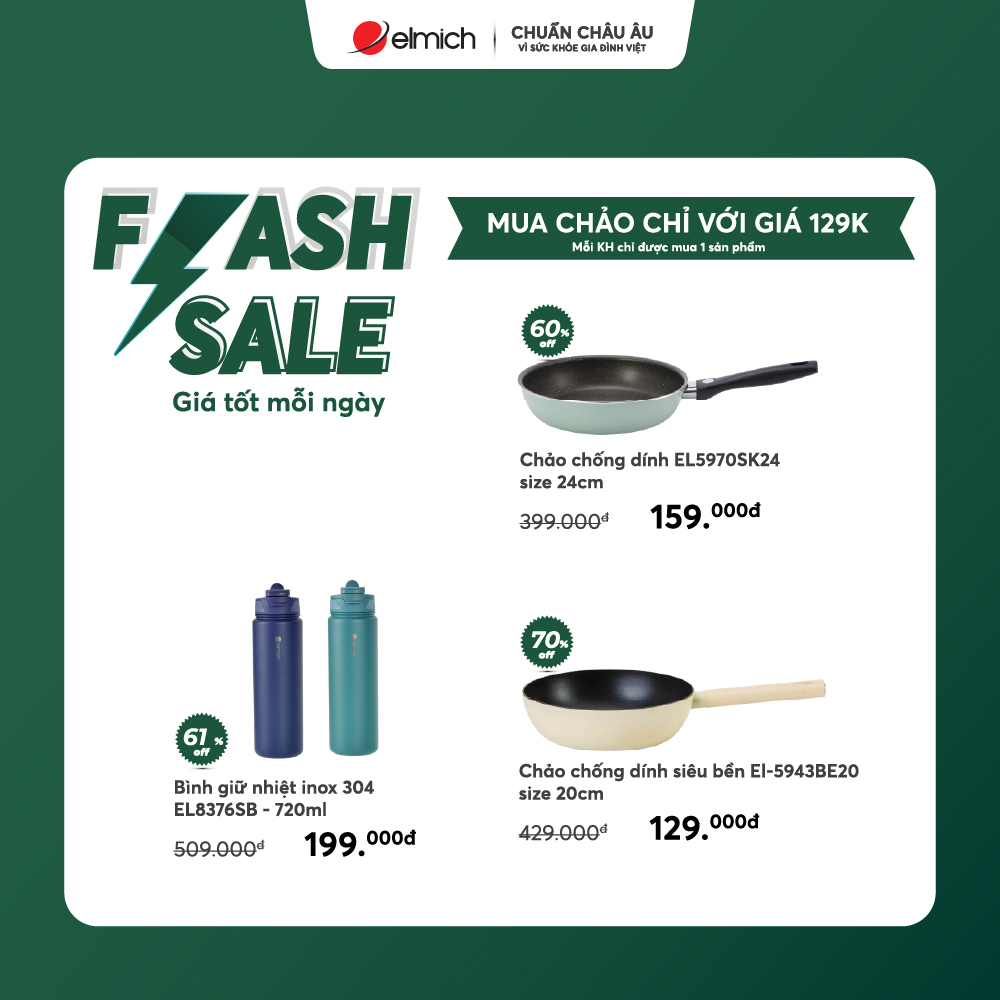Duy nhất trong khung giờ 17h – 18h các ngày Thứ 6, 7, CN (12 – 13 – 14/09 và 19 – 20 – 21/09), khách hàng có cơ hội bốc thăm trúng suất mua siêu hời: Chảo Elmich 2355945GY24