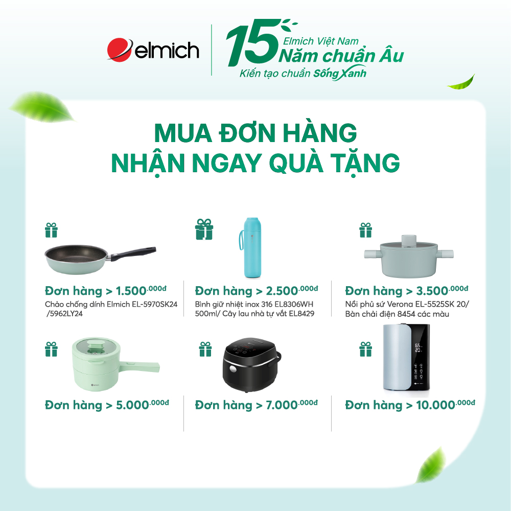 - Đơn hàng từ 2.500.000Đ, nhận ngay quà tặng Bình giữ nhiệt Inox 316 EL8306WH hoặc Cây lau nhà tự vắt EL8429