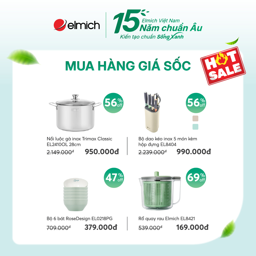 Nhân dịp kỷ niệm 15 năm đồng hành cùng gia đình Việt và dịp sinh nhật cửa hàng Elmich Hùng Vương Đà Nẵng, Elmich mang đến đại tiệc ưu đãi hấp dẫn - cơ hội lý tưởng để lựa chọn các sản phẩm gia dụng chuẩn Châu Âu, an toàn và bền bỉ cho gian bếp 📢