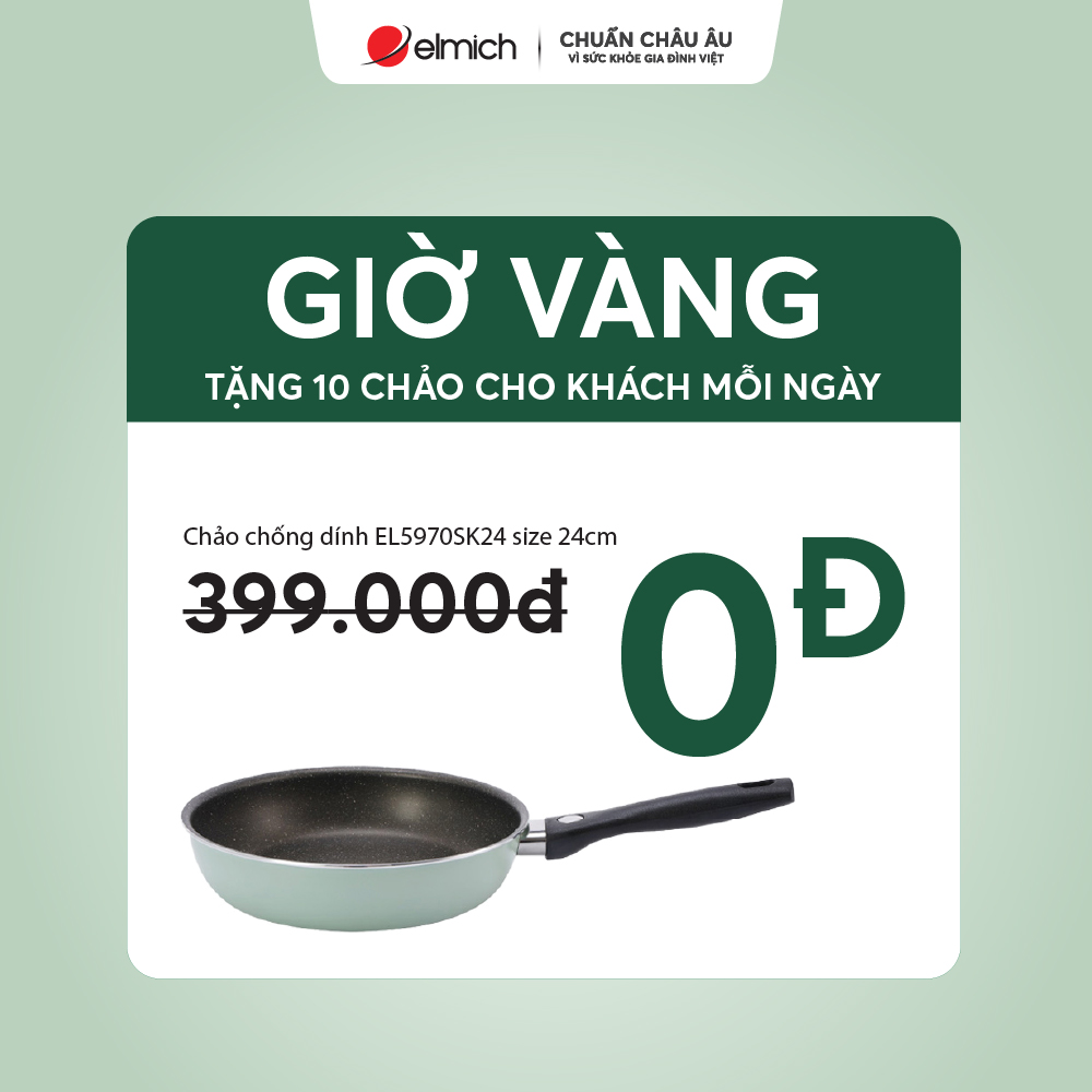 Đặc biệt, Elmich gửi tặng chảo chống dính Ceramic EL5970SK24 (size 24cm) cho khách hàng mua sắm trong khung giờ này – món quà thiết thực, giúp căn bếp của bạn thêm tiện nghi và tràn ngập niềm vui.
