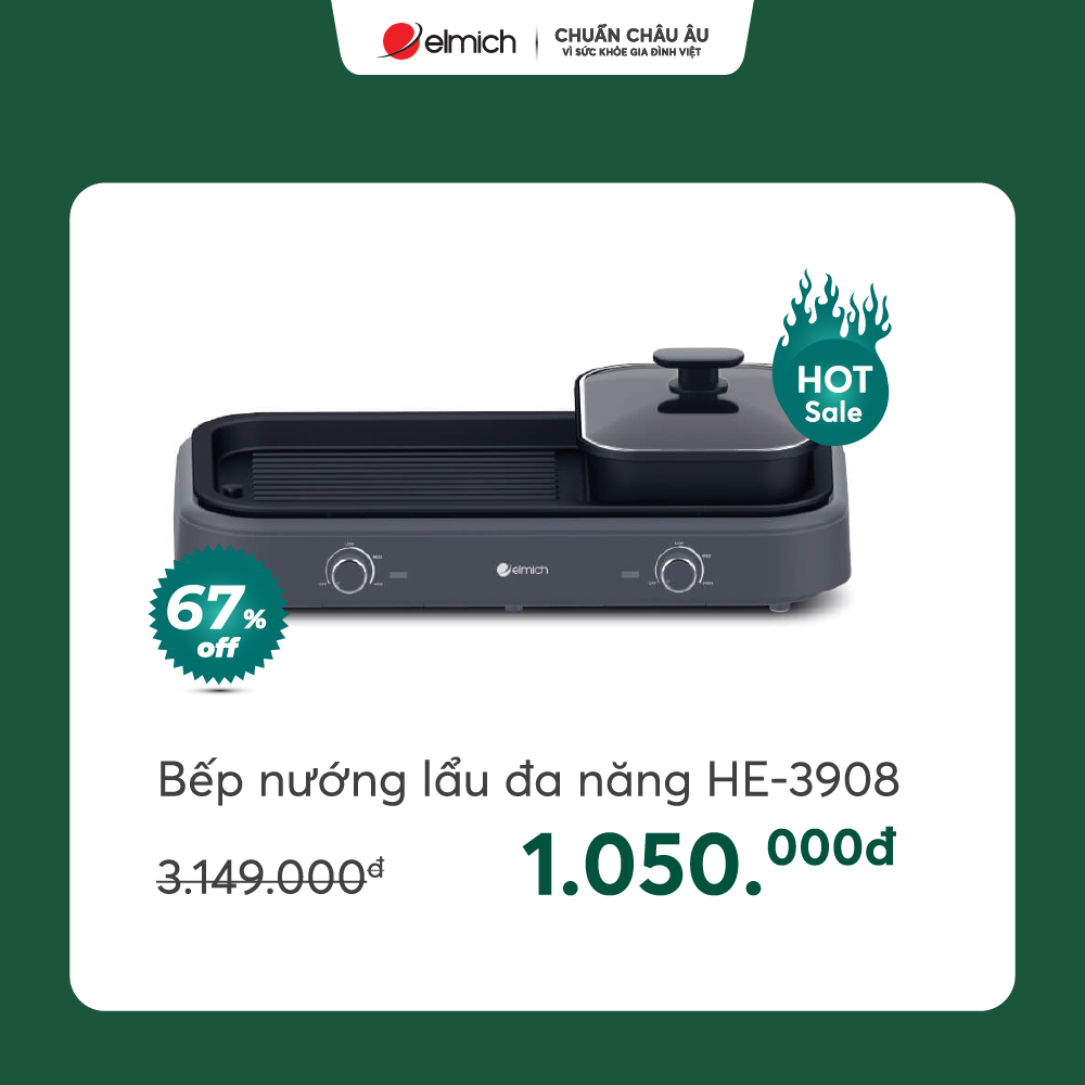 - Bếp nướng lẩu đa năng HE-3908 chỉ còn 1050K, giá gốc 3149K