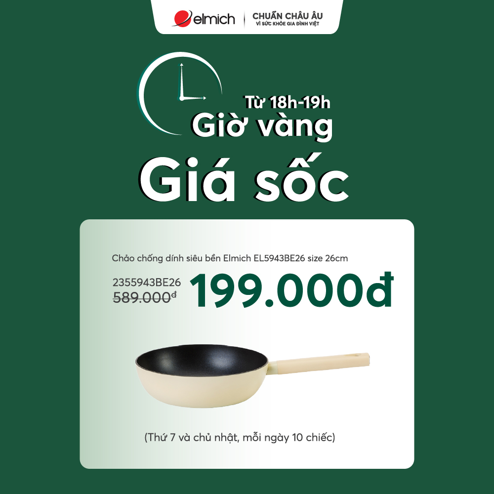 🔥 Chảo chống dính siêu bền Elmich EL5943BE26 size 26cm giảm hơn 60% 🔥