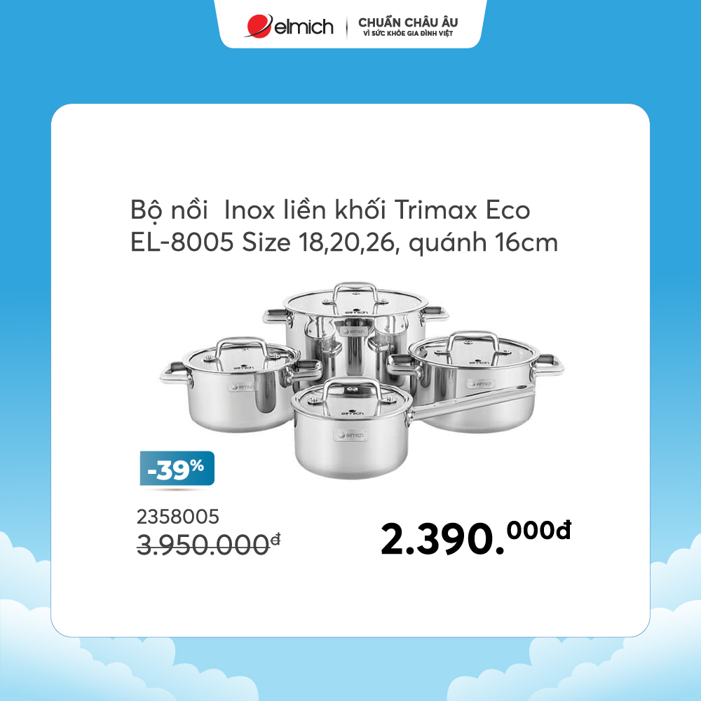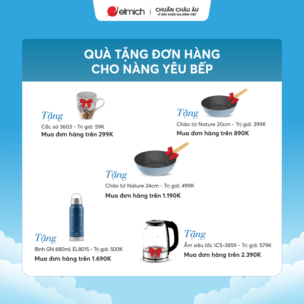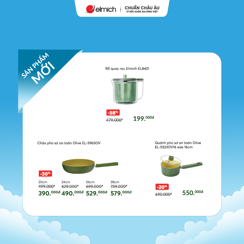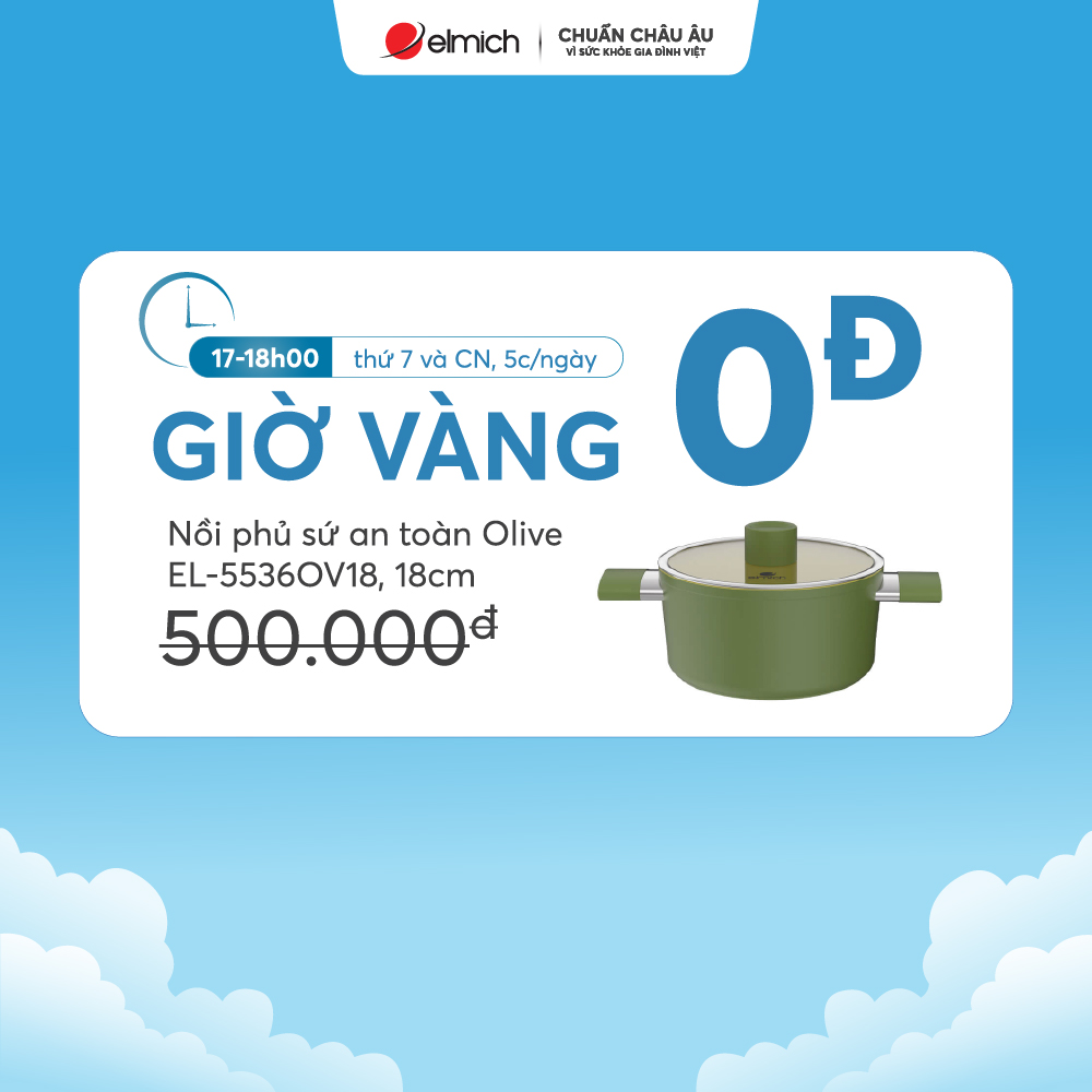 - Sản phẩm ưu đãi: Nồi phủ sứ an toàn Elmich Olive EL-5534OV18 size 18cm (giá 0 đồng – mỗi ngày chỉ 10 chiếc)