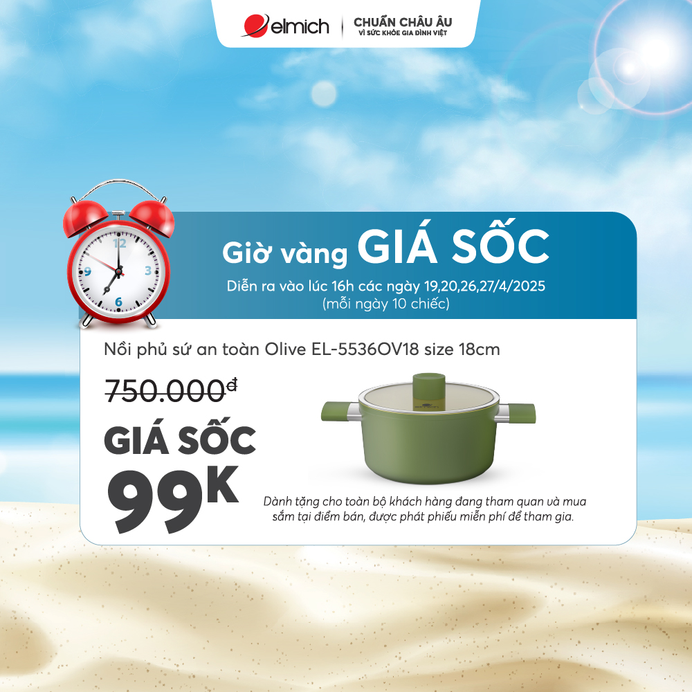- Đơn từ 2399K: Tặng 1 nồi phủ sứ an toàn Olive EL5536OV18 trị giá 750K
