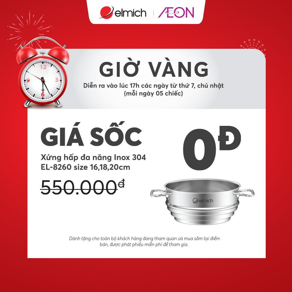 Chỉ 0Đ sở hữu ngay xửng hấp đa năng Inox 304 Elmich EL-8260 size 16,18,20cm 0đ