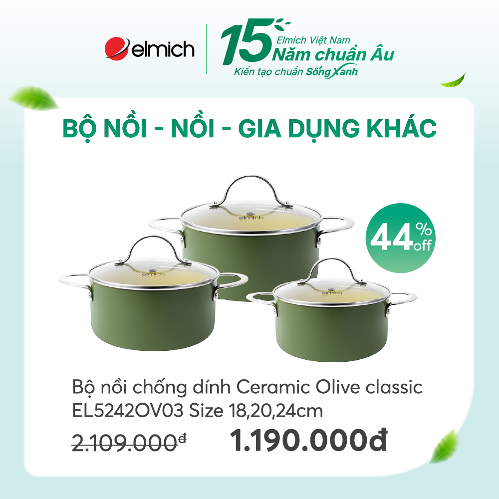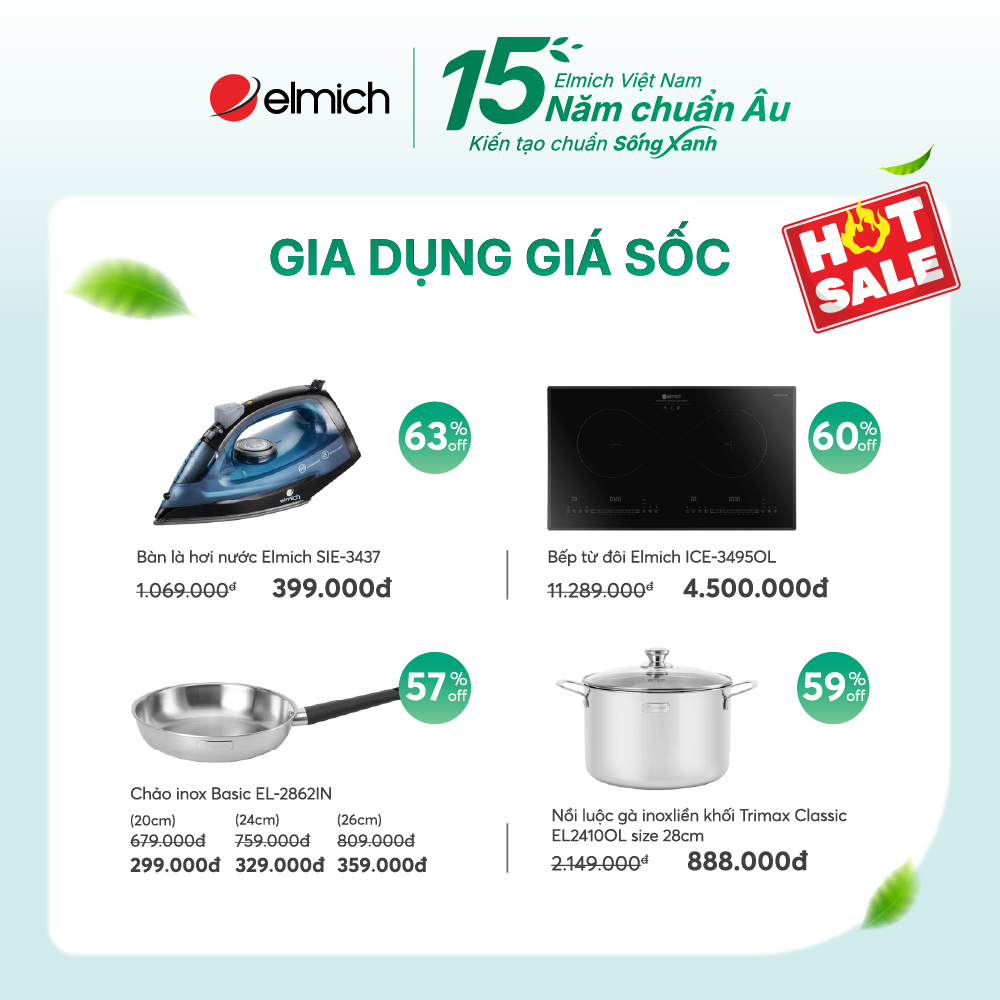 Hàng loạt sản phẩm gia dụng Elmich được ưu đãi hấp dẫn trong khuôn khổ chương trình kỷ niệm 15 năm. Từ nồi, chảo, bình giữ nhiệt đến các vật dụng nhà bếp tiện ích – tất cả đều được lựa chọn với tiêu chuẩn chất lượng châu Âu, đáp ứng nhu cầu sử dụng hằng ngày của gia đình.