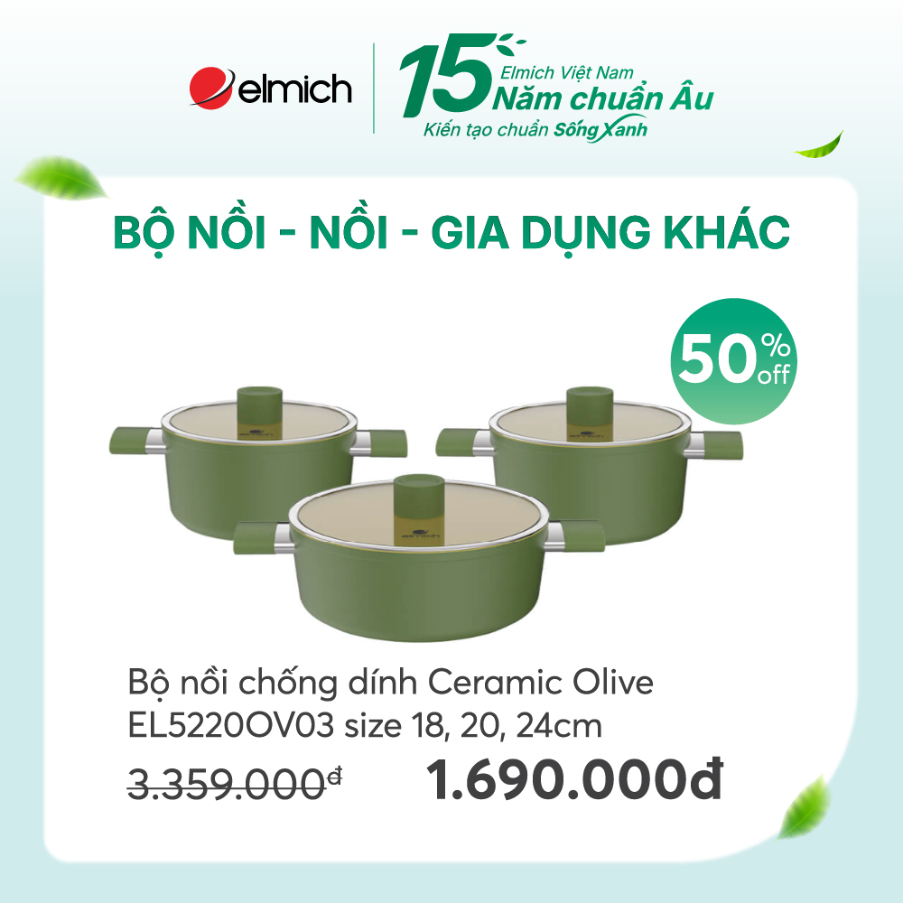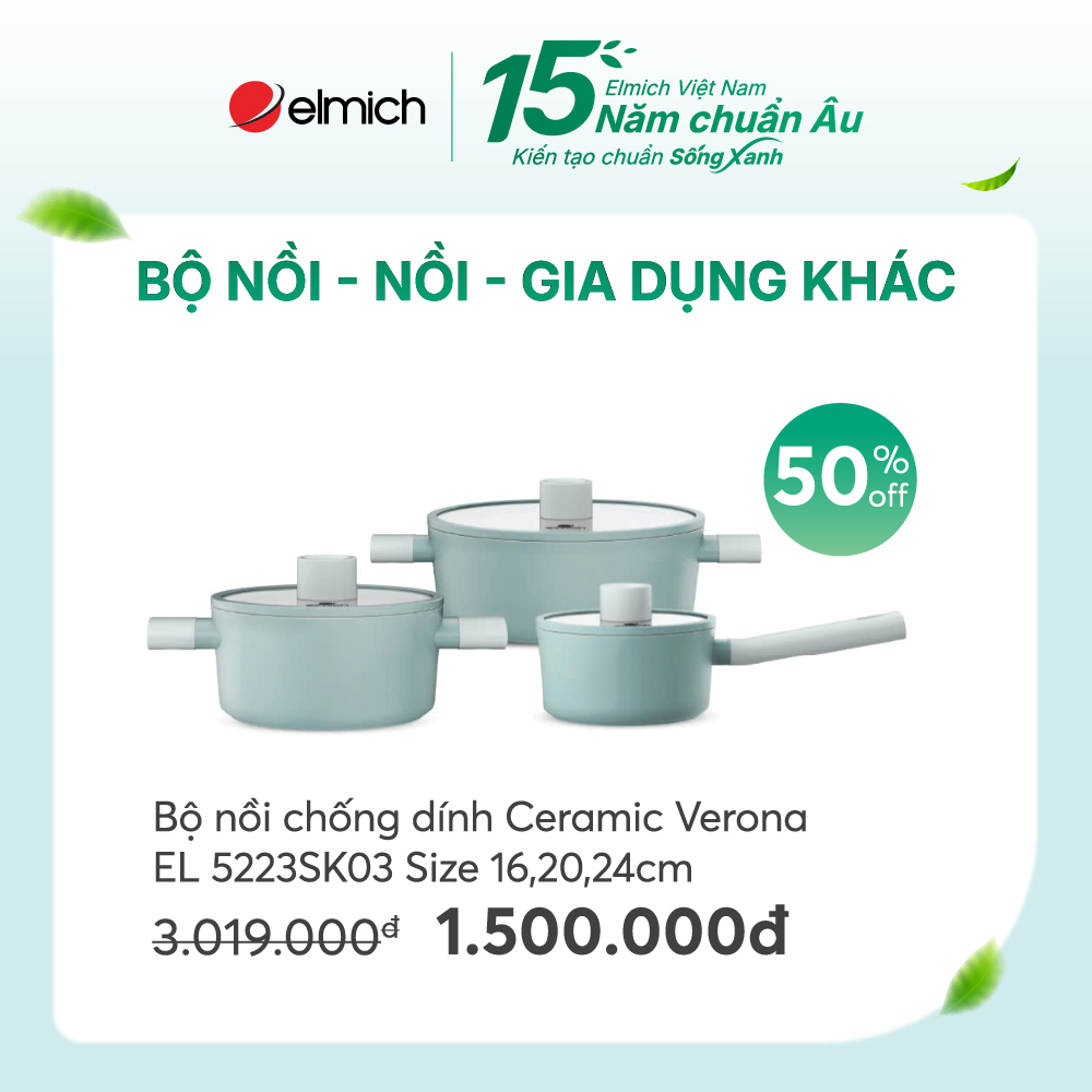 - Đơn hàng từ 6.000.000Đ, nhận ngay Bộ nồi chống dính vân gỗ Elmich Nature kèm chảo