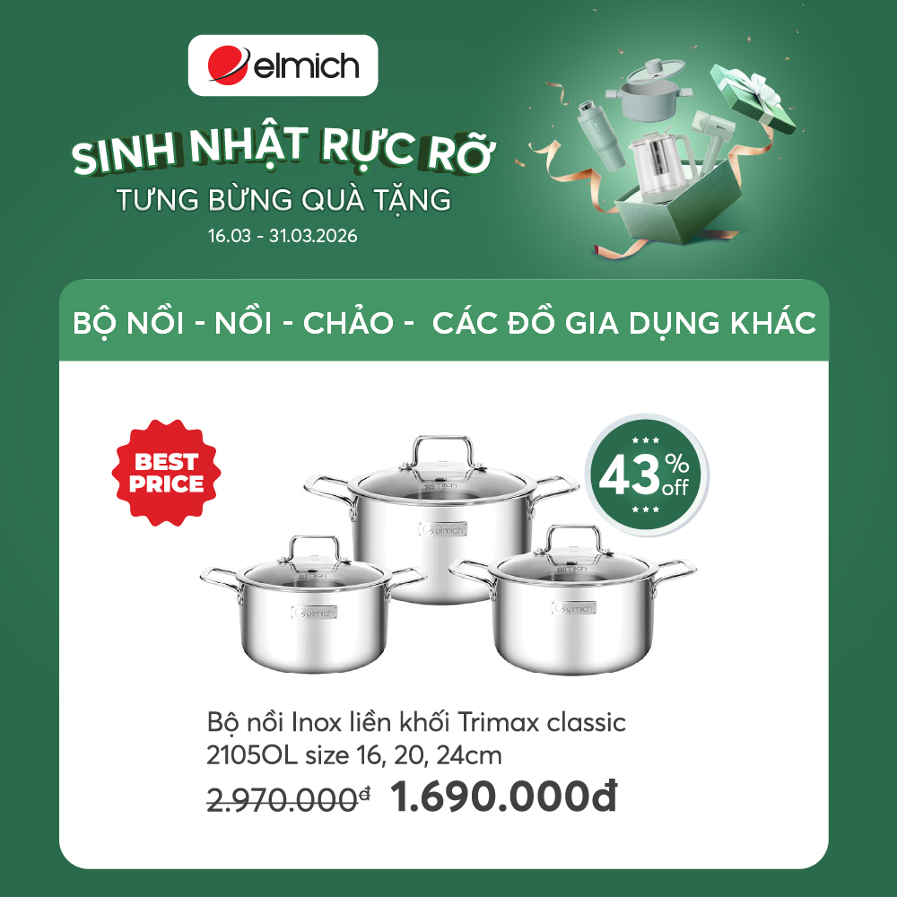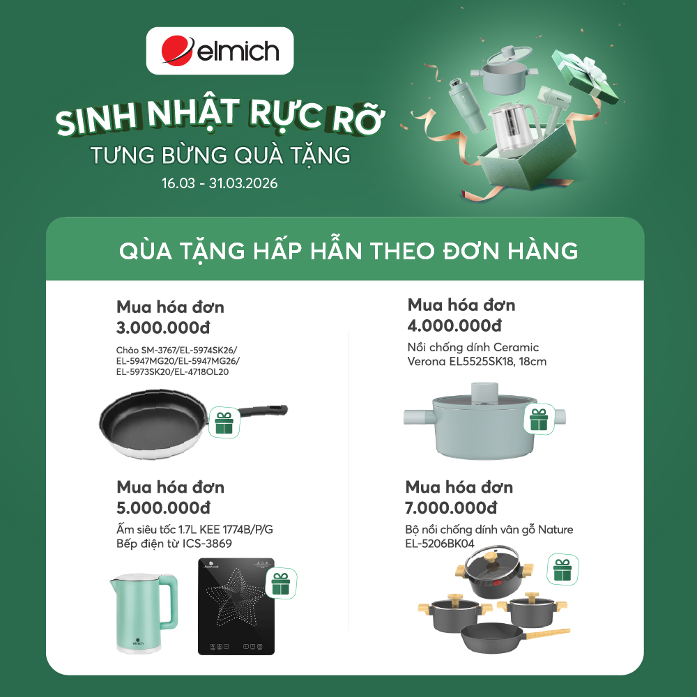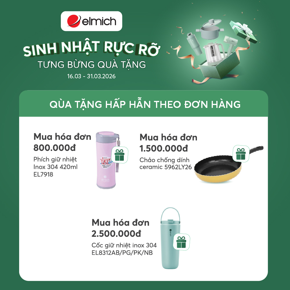 Elmich dành tặng quà tặng giá trị theo hóa đơn như một lời tri ân đến khách hàng đã luôn tin tưởng và đồng hành cùng thương hiệu. Khi mua sắm đạt các mức giá trị sau, khách hàng sẽ nhận ngay quà tặng hấp dẫn: