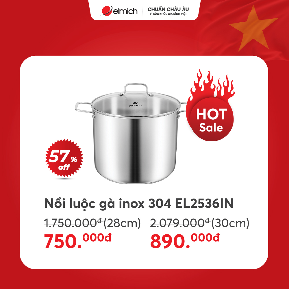 Nồi luộc gà inox 304 EL2536IN 28cm chỉ 750k, giá gốc 1.750k