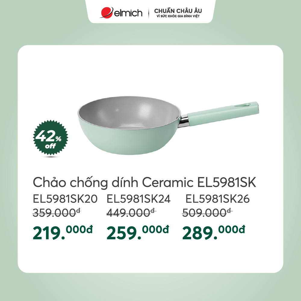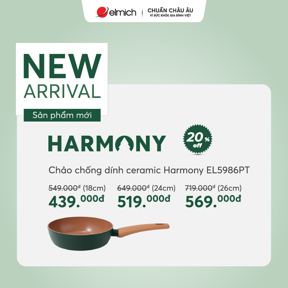 🌟 Quà tặng Chảo chống dính cao cấp Ceramic Elmich Harmony EL5986PT24