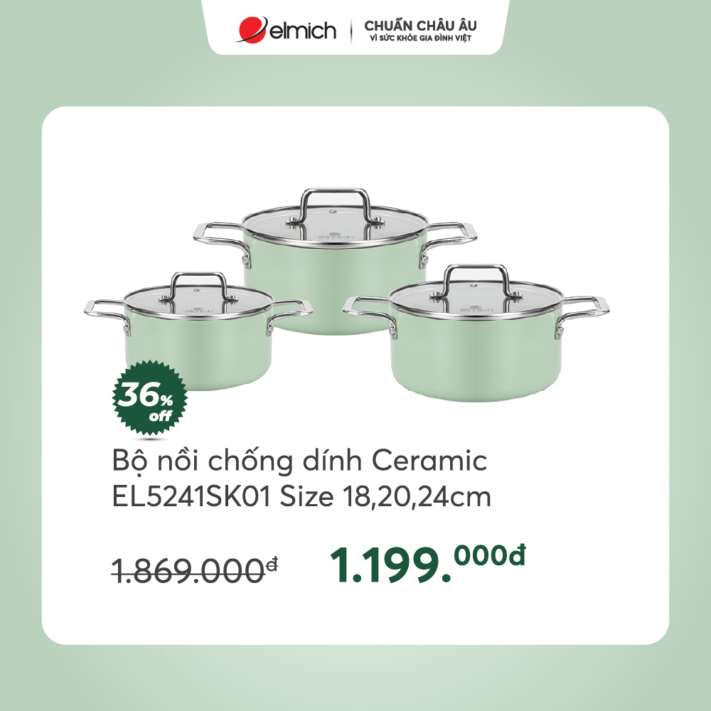 🌟 Quà tặng Bộ nồi chống dính Ceramic Elmich Mocha EL5243MC04