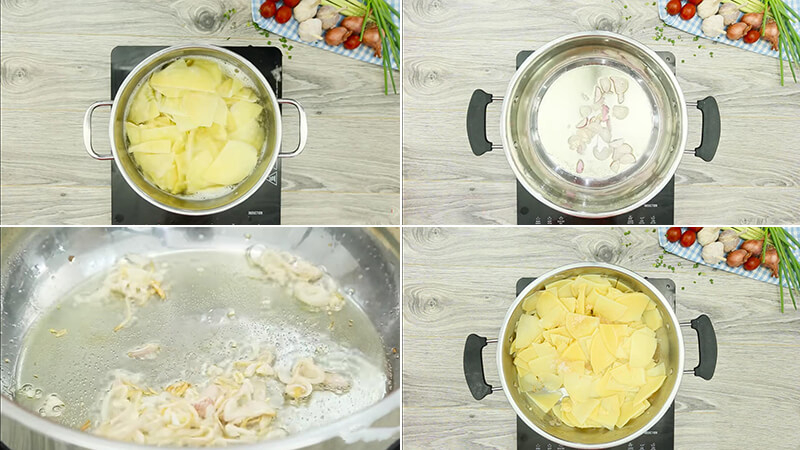 Lần lượt sơ chế các loại nguyên liệu để nấu lẩu măng chua