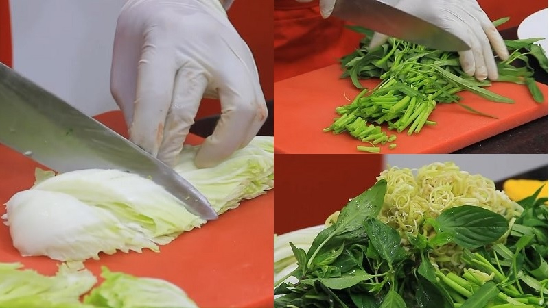 - Rau muống, cải xanh, cải cúc, rau rút (tùy sở thích)