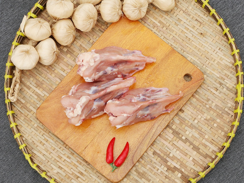 Xương gà bạn rửa sạch với nước muối loãng, rồi xả nước lạnh. Cách này giúp loại bỏ mùi tanh của xương gà.