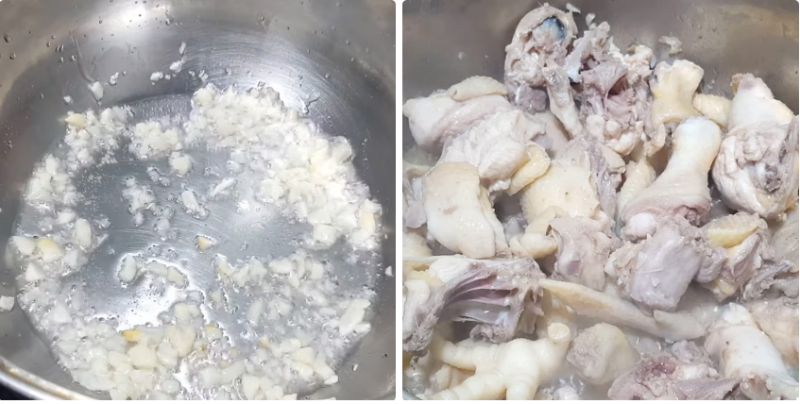 Cho tỏi băm, một chút hành băm vào phi thơm.