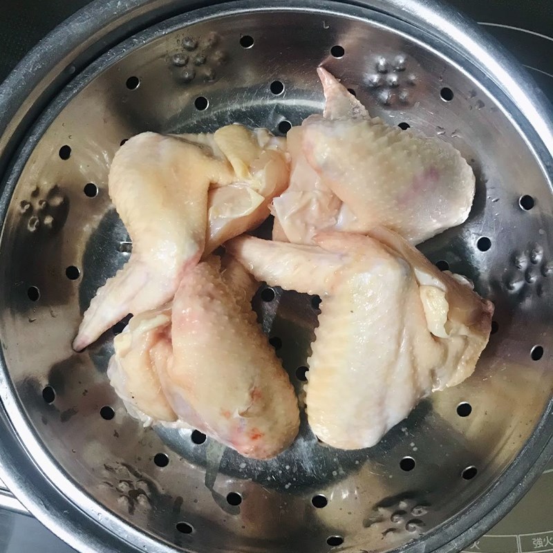 Chuẩn bị một nồi nấu lẩu rồi đặt lên bếp ở nhiệt độ cao. Sau đó, thêm một ít dầu ăn để xào thịt gà đã ướp trước đó. Tiến hành xào đến khi thịt trở nên săn lại thì đổ vào nồi khoảng 1,5 lít nước. Xương ống đã sơ chế trước đó sẽ bỏ vào nồi nấu lẩu để ninh cùng gà. Đun sôi trên lửa lớn rồi vớt bớt bọt bẩn để nước lẩu được trong hơn.