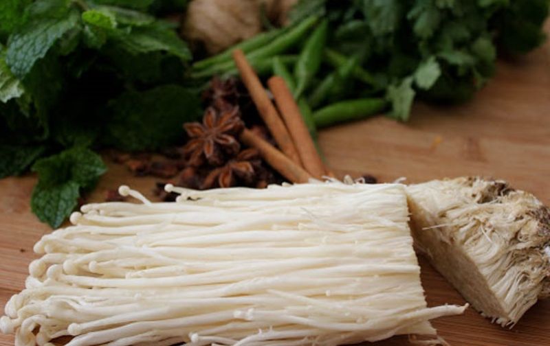 Với nấm kim châm, bạn cắt bỏ phần gốc của nó rồi rửa lại thật sạch với nước muối pha loãng. Lần lượt nhặt bỏ những lá vàng úa, thối, dập nát của các loại rau. Sau đó ngắt thành từng khúc vừa ăn, để sạch trên rổ cho ráo nước hoàn toàn.