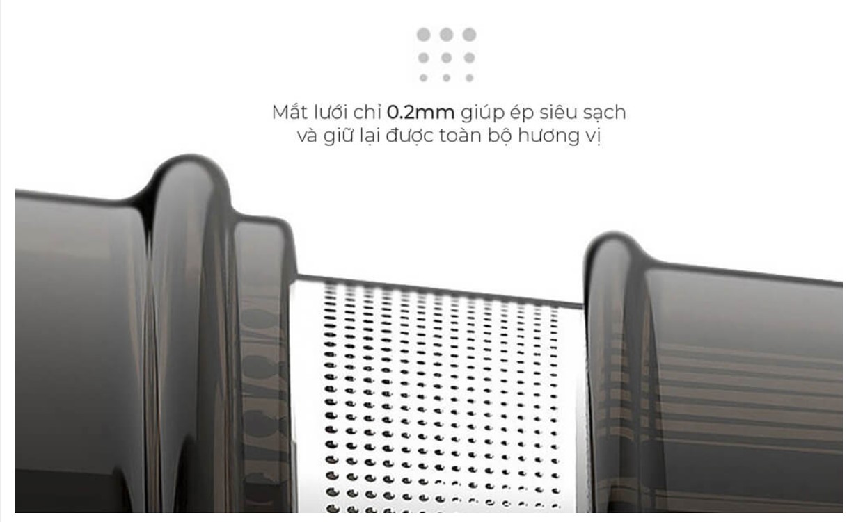Đây là bộ phận quan trọng quyết định độ mịn của nước ép và lượng bã thải ra. Nên chọn máy ép chậm có lưới lọc bằng inox 304 không gỉ, có độ dày cao và kích thước lỗ nhỏ để giữ lại tối đa vitamin, khoáng chất có lợi trong nước ép.