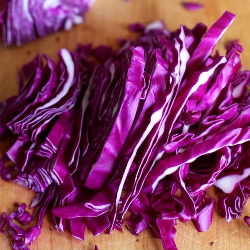 Rau củ: bắp mì, ngò gai, hành lá, và tỏi, bắp cải tím, súp lơ xanh