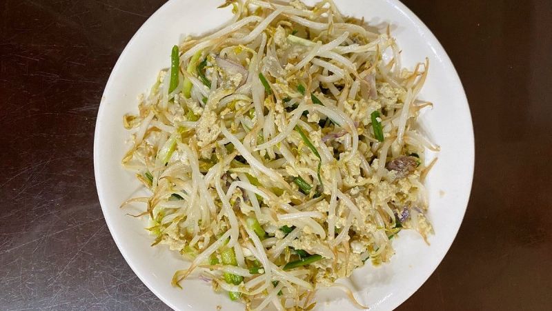 Hãy sơ chế sạch các loại rau, giá đem xào nhẹ với hành nếu thích bạnc ũng có thể xào trứng