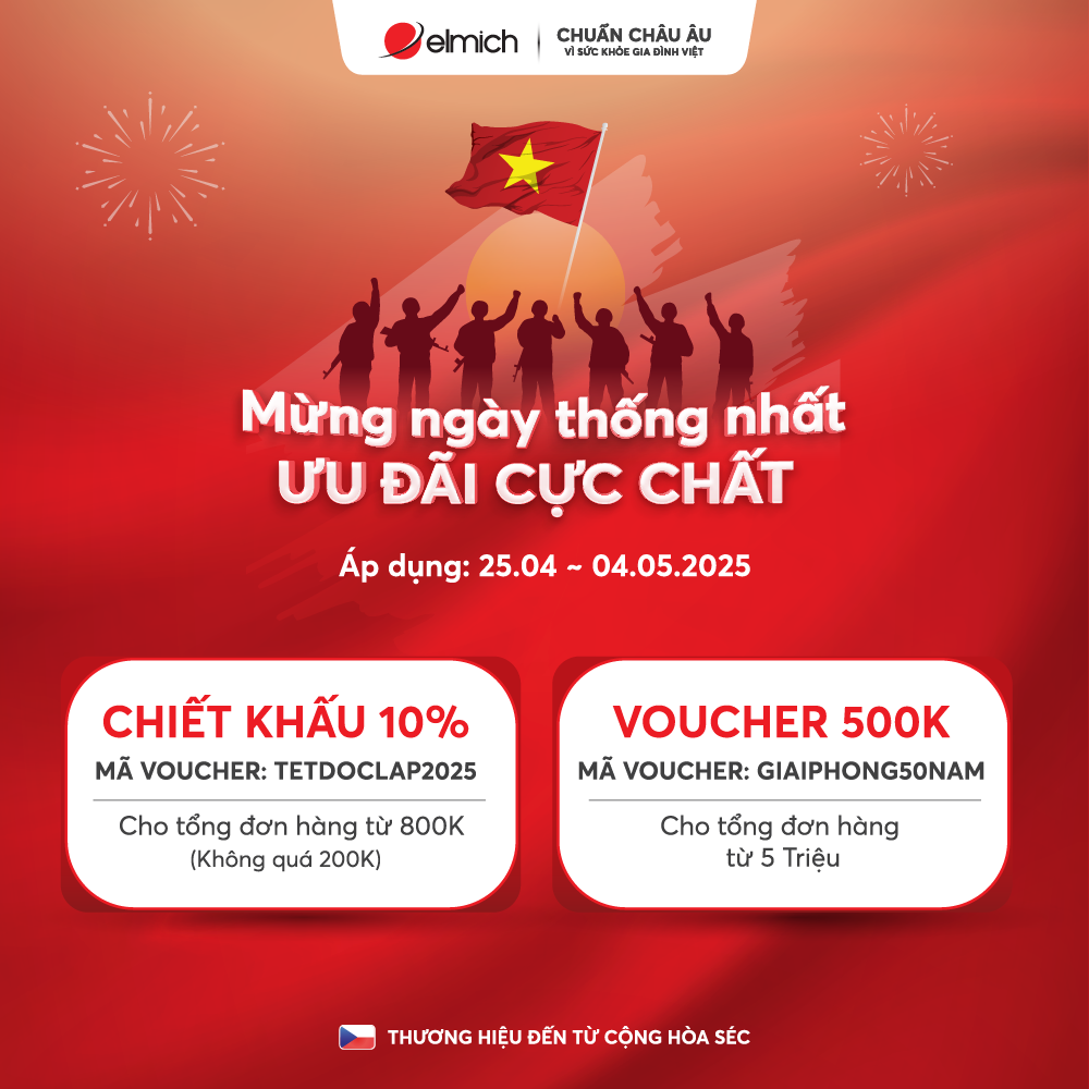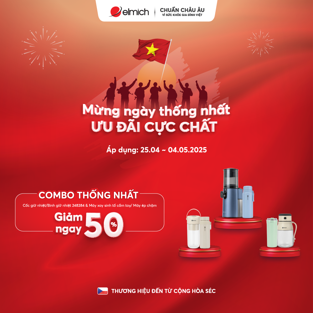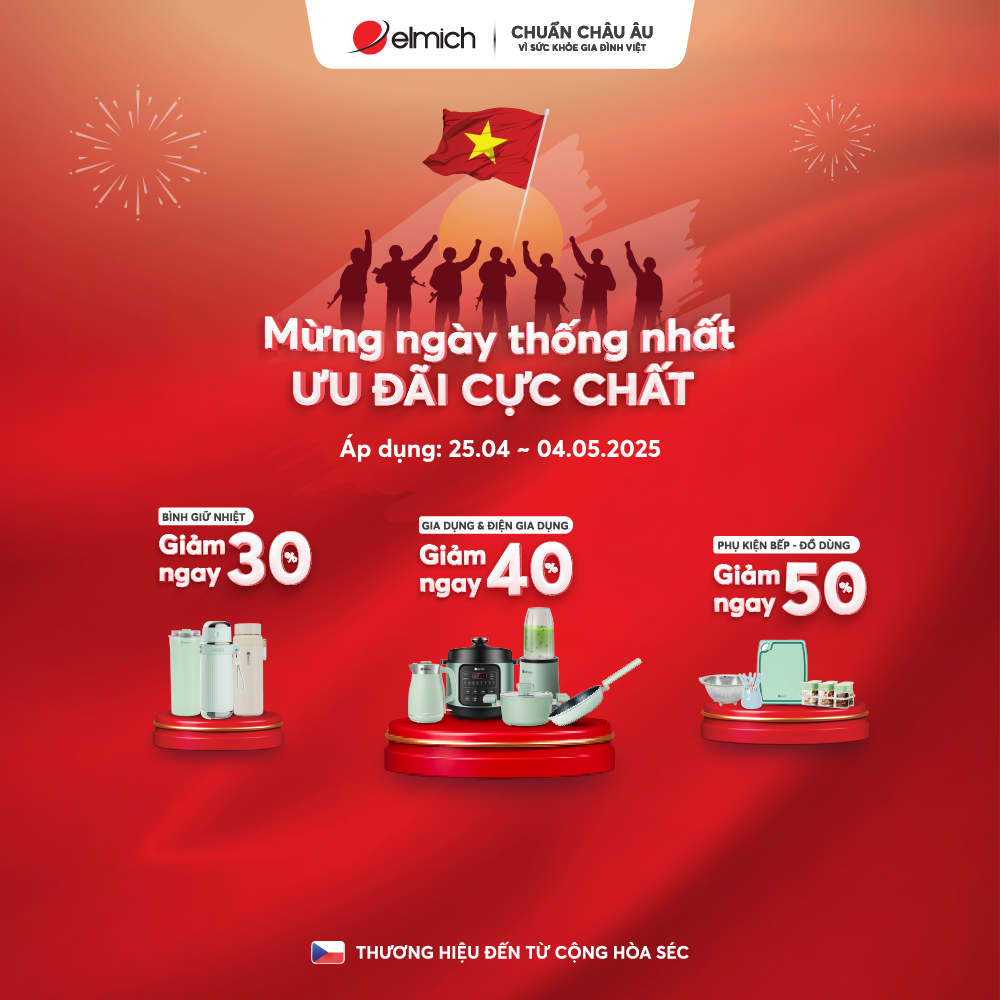 Cả nước hân hoan mừng ngày thống nhất, còn bạn thì chuẩn bị sẵn tinh thần “tân trang” không gian bếp với ưu đãi cực chất từ Elmich nhé! Từ nồi chảo đến máy xay, bình giữ nhiệt… tất cả đều đang đồng loạt GIẢM GIÁ SÂU, để bạn rinh ngay về nhà mà ví vẫn êm ru!