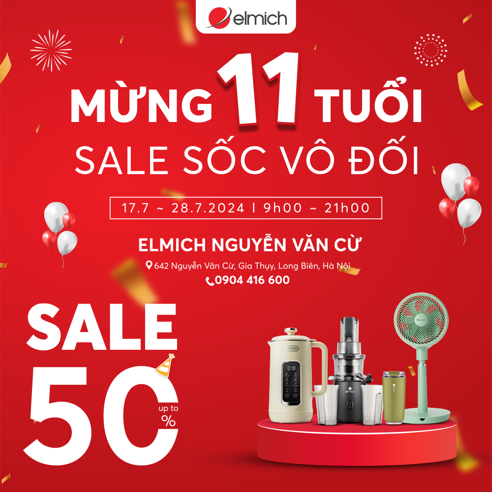 Chào tuổi 11 rạng ngời, showroom Elmich Nguyễn Văn Cừ tung loạt deal sốc chấn động khao mời toàn bộ quý khách hàng vì đã luôn tin tưởng và đồng hành cùng showroom trong suốt hơn một thập kỷ qua. Sẵn sàng nhập tiệc ngay thôi nào!