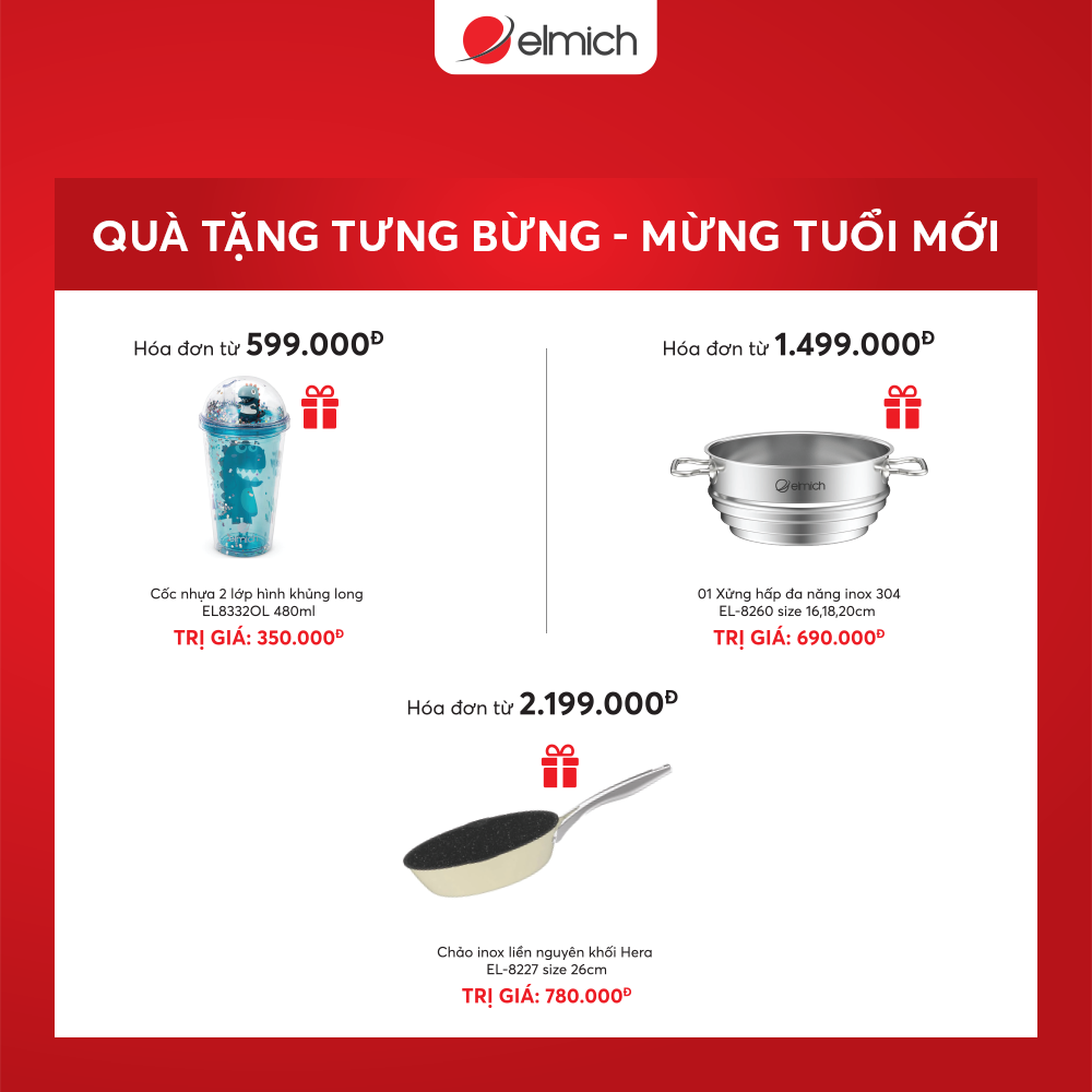 - Hóa đơn từ 2.199K TẶNG Chảo inox nguyên khối size 26cm trị giá 780K