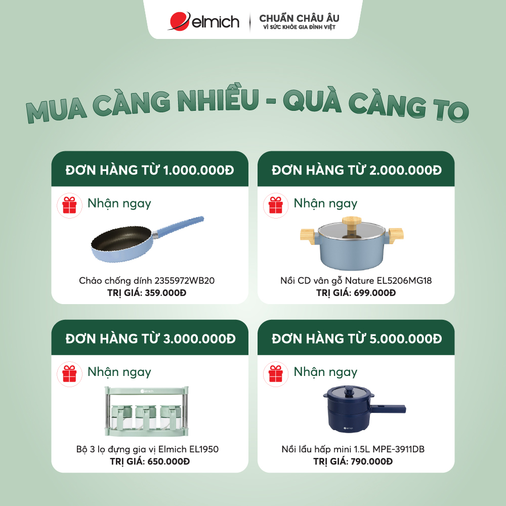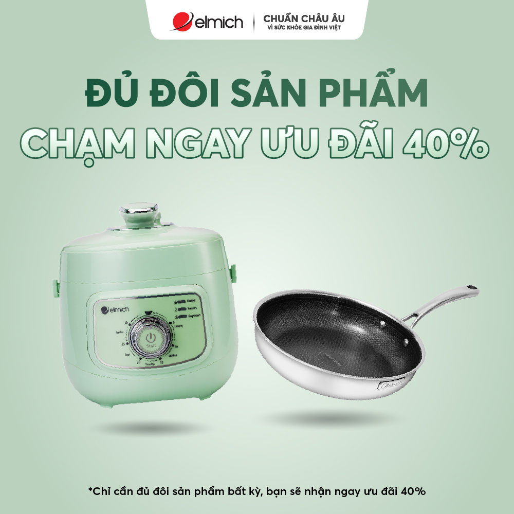 Mùa lễ hội càng rộn ràng hơn khi bạn mua sắm cùng Elmich! Chỉ cần mua từ 2 sản phẩm bất kỳ, bạn sẽ nhận ngay ưu đãi 40% – cơ hội tuyệt vời để sắm trọn bộ đồ bếp chuẩn Âu cho gia đình. Từ nồi, chảo, đến bình giữ nhiệt, hộp cơm, tất cả đều đang sẵn sàng để bạn lựa chọn và tận hưởng niềm vui mua sắm tràn ngập ưu đãi hàng chuẩn Châu Âu.