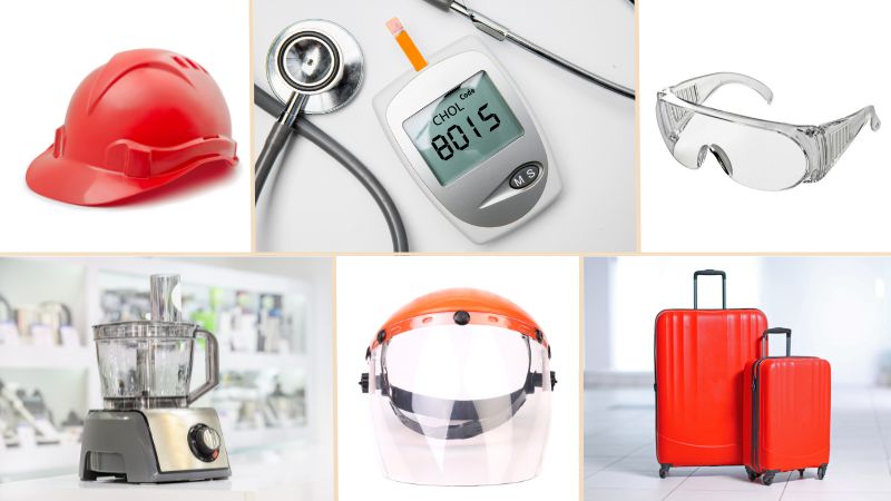 - Chế tạo đồ thể thao như mũ bảo hiểm, kính bảo hộ, v.v. do khả năng chịu va đập tốt và nhẹ.