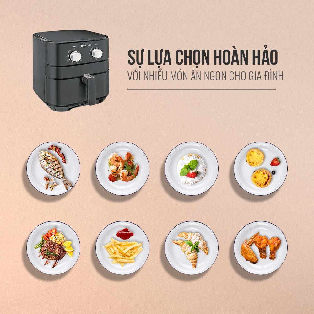 Vậy nên, Bạn có thể thực hiện nấu các bữa ăn ngon miệng, giòn và lành mạnh mà không cần dùng quá nhiều dầu, giúp giảm lượng calo và chất béo.