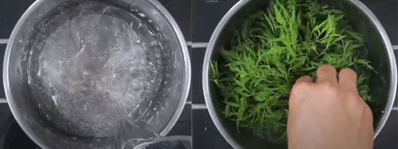 Nấu kỹ lá đinh lăng với nước để có nước uống