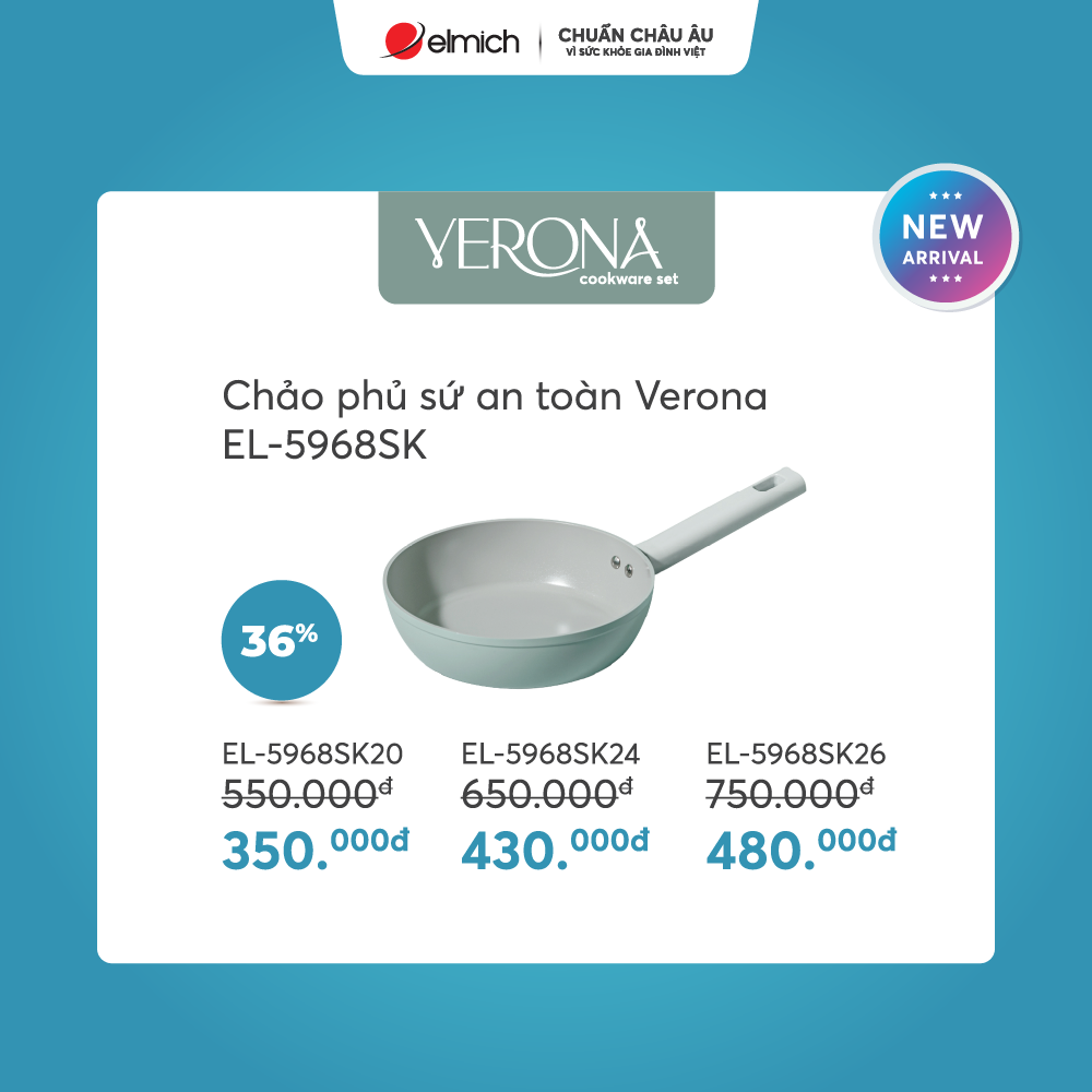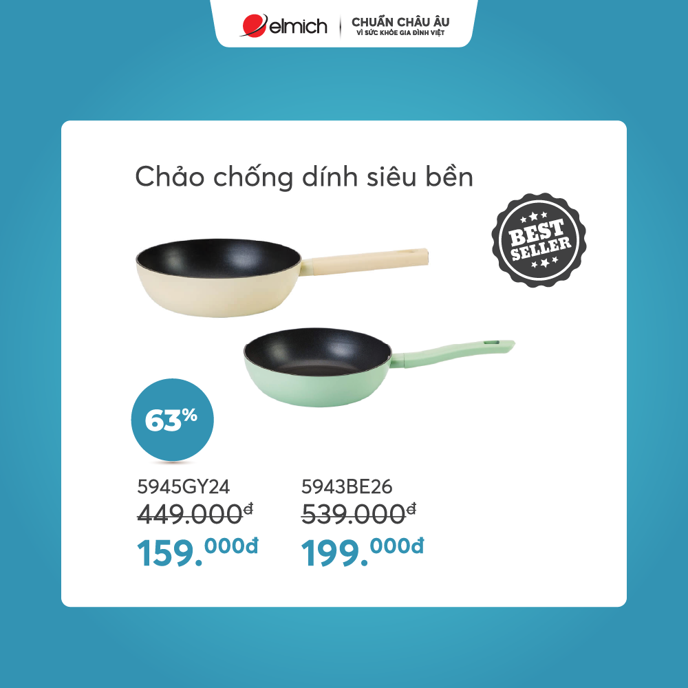 - Chảo chống dính siêu bền Elmich El-5943BE26 size 26cm chỉ 199k, giá gốc 539k