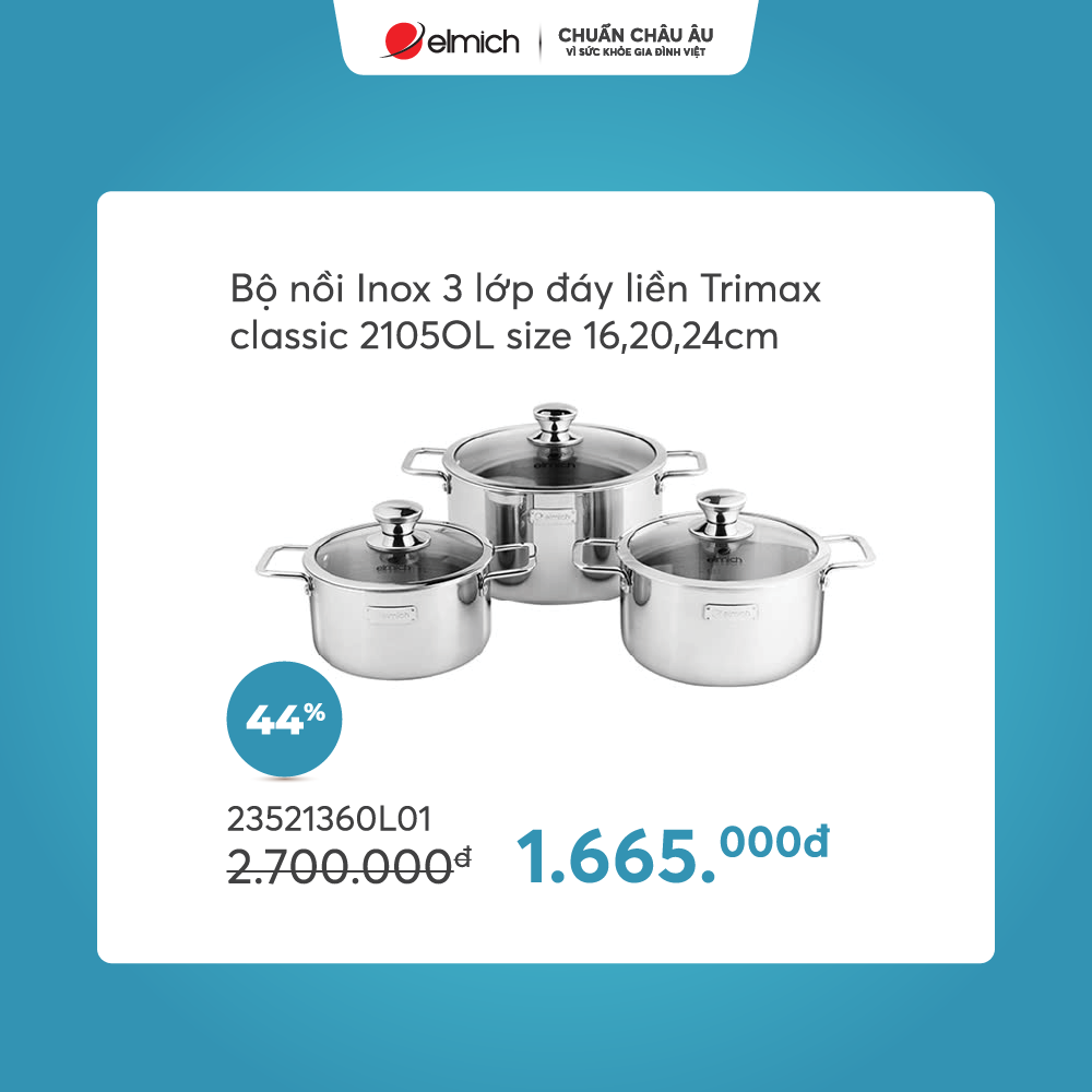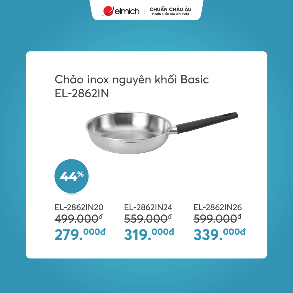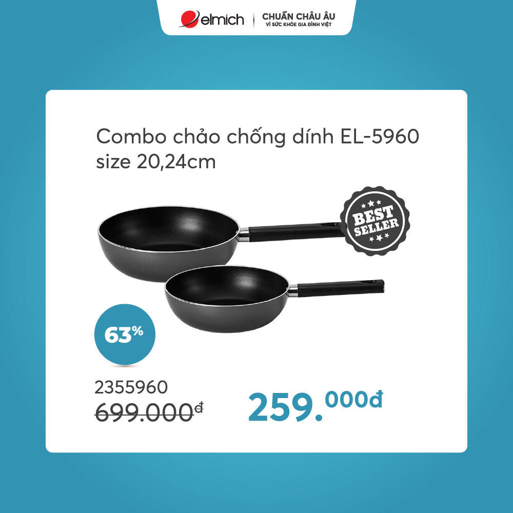- Combo chảo chống dính Elmich EL-5960 size 20,24cm chỉ 259k, giá gốc 699k