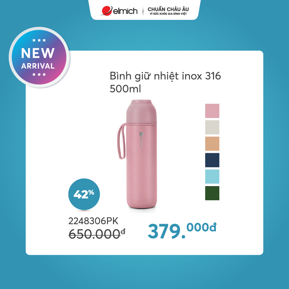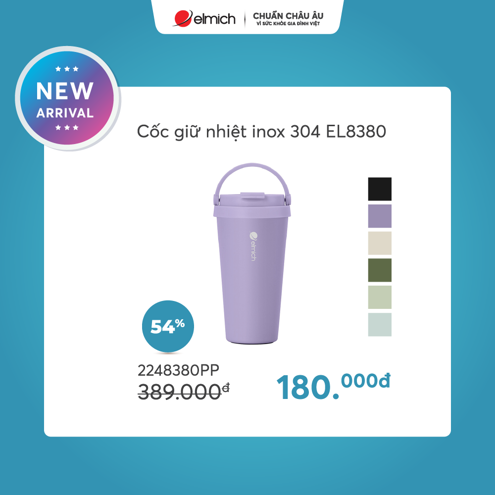 - Cốc giữ nhiệt inox 304 Elmich EL8380 dung tích 510ml chỉ 180k, giá gốc 389k