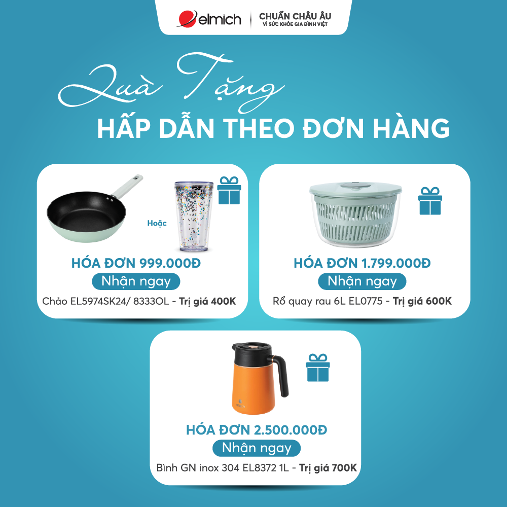 - Đơn hàng từ 2.500K tặng ngay bình giữ nhiệt gia đình inox 304 Elmich EL8372 dung tích 1L trị giá 700k