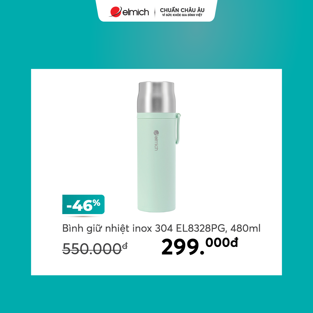 - Bình giữ nhiệt inox 304 Elmich EL8328PG dung tích 480ml chỉ 299K, giá gốc 550K