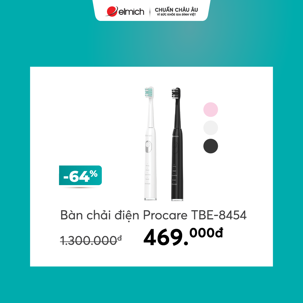 - Bàn chải đánh răng điện Elmich Procare TBE-8454BK/WT chỉ 469K, giá gốc 1.300K
